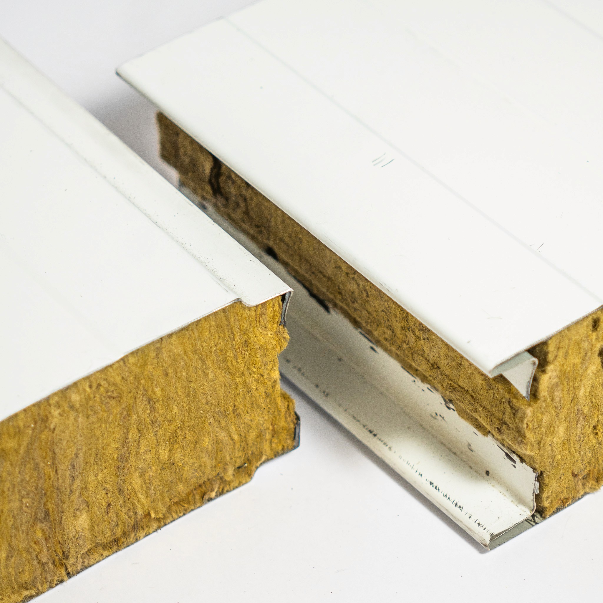 Panel aislado con núcleo de lana de roca (densidad 100 kg/m3 +/- 15% según normas NCH 1071 OF84 1 era Edición). Se puede fabricar en distintos espesores: 50, 80, 100 y 150 mm; de alta resistencia al fuego.