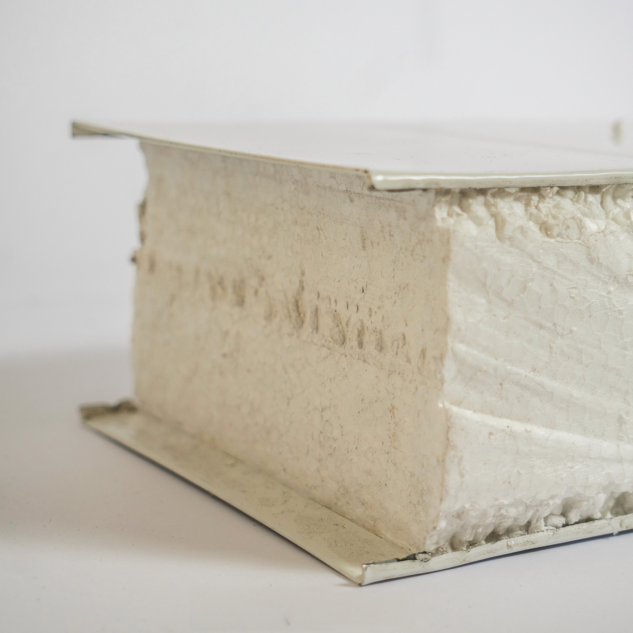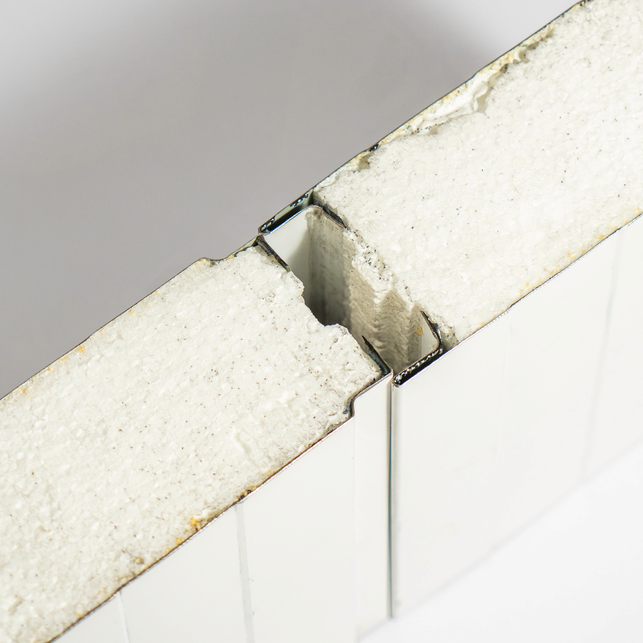 Panel aislado con núcleo de poliestireno expandido (POL) con aditivo retardador de llama (autoextinguible), disponible en densidades 15 o 20 kg/m3. Se puede fabricar en espesores desde 30 mm hasta 250 mm.